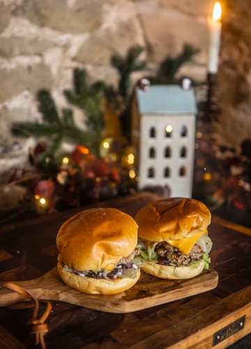 Catherine Wheel Sausage with Grilled Balsamic Pears & Camembert