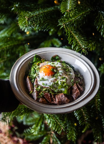 Aubergine Schnitzel, Wild Mushroom Sauce & Grilled Hispi Cabbage with Miso Butter