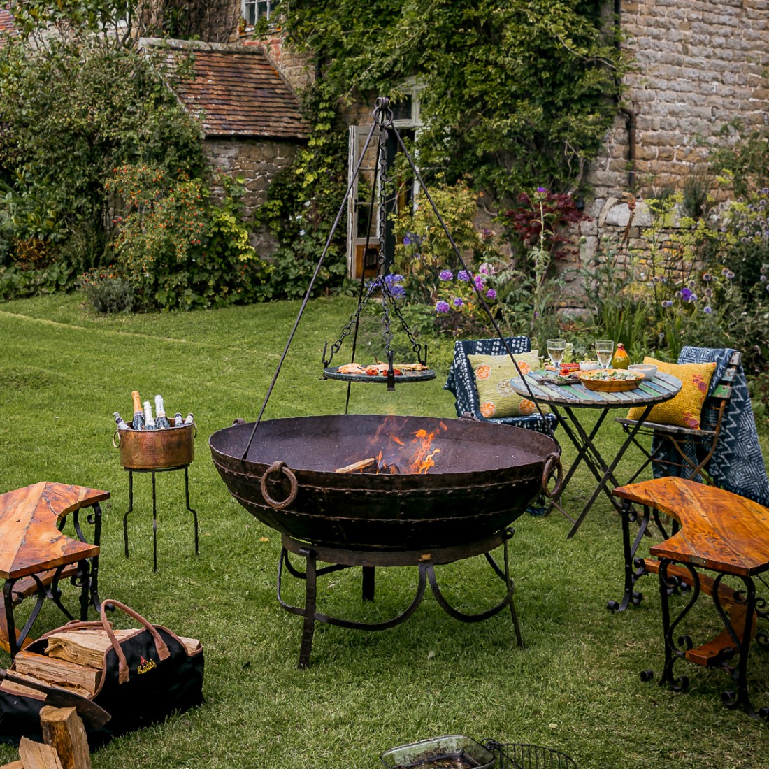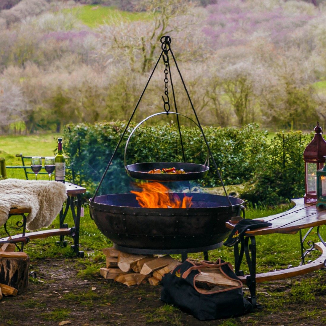 Discover the ultimate outdoor cooking solution with our Cooking BBQ Tripod, one of Kadais's most popular accessories. Designed to complement any Kadai bowl, this BBQ tripod transforms your firepit into a multi-level BBQ. Hang a succulent joint of meat over the open flames using the durable chain hook or utilise one of our five BBQ Tripod accessories. The Cooking BBQ Tripod includes an adjustable chain to raise and lower the accessories for controlling cooking temperatures, plus feet that easily hook onto the rim of the Kadai. Elevate your outdoor gatherings with this indispensable accessory. Shop now to explore the full range and embark on your Kadai cooking adventure.