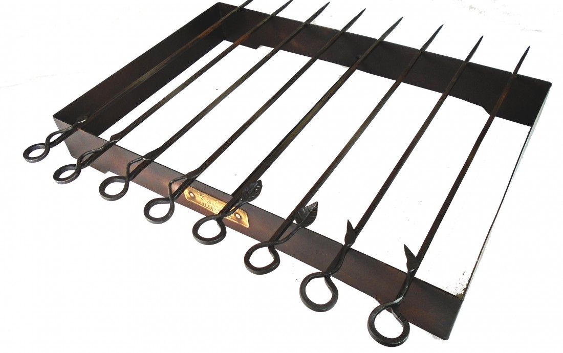The BBQ Skewers, a must-have Kadai cookware accessory, bring versatility to your outdoor grilling. Ideal as both kebab skewers and skewers for your BBQ, these eight hand-forged BBQ Skewers feature an elegant leaf design. They lock into place within the rack to keep food separate and avoid food sticking to the grill. The square slot design locks each skewer in place. Perfect for an array of mouth-watering dishes such as kebabs, shawarma, satay chicken and many more delicious combinations.