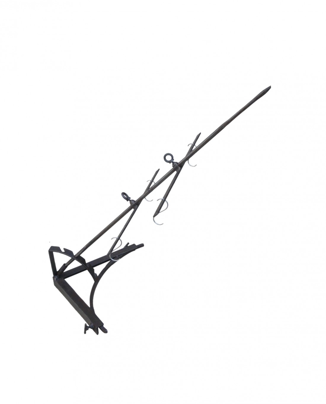 bought this for new years eve to slow roast the top half of a lamb. I didnt use the hooks, just wired the lamb to the holes in the cross. Combined with the flambadou for added effect and flavour (that thing needs to be red hot to work well). Absolutely fun to use and makes delicious smoked food