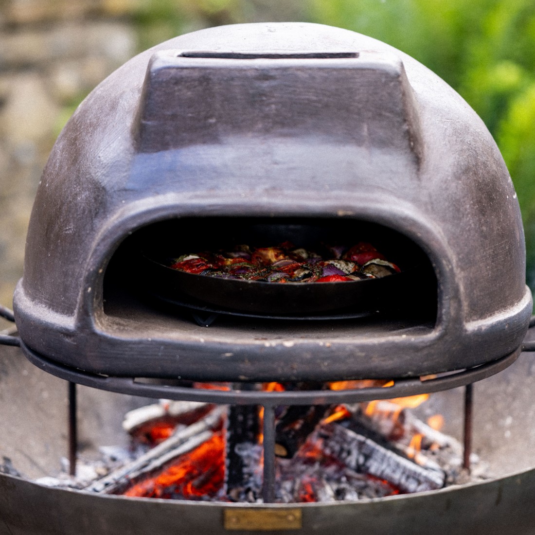 A handmade metal Oven Dish perfect for roasting and baking in the Kadai Wood Fired Oven. The Oven Dish is designed in a round shape to rotate food in the Wood Fired Oven easily. Great for baking a delicious pie, roasting vegetables or cooking a crumble - elevating what you can cook in your Wood Fired Oven.