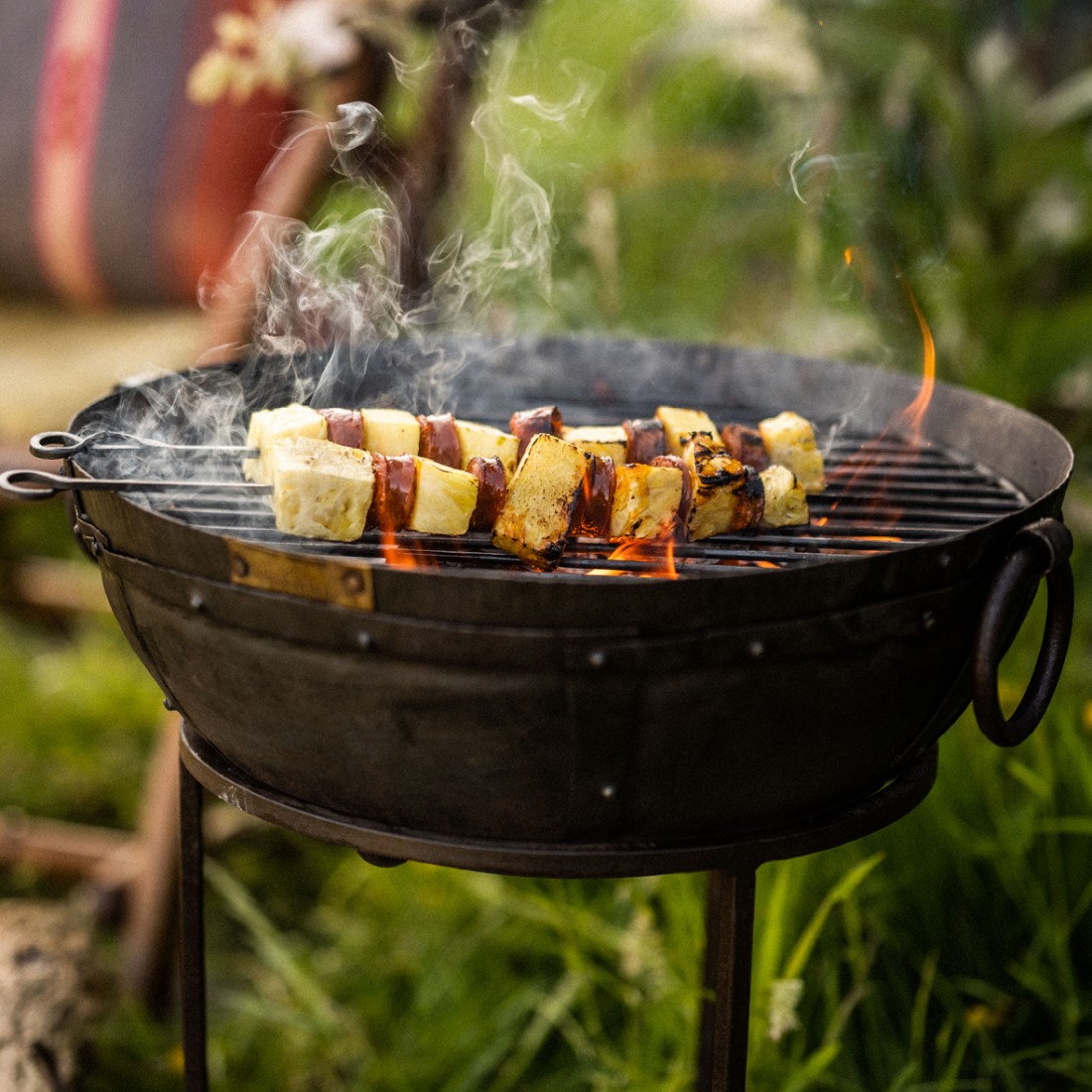 Add the Hook, portable Skillet, Lid, Skewers and BBQ Grill tray to complete the set.