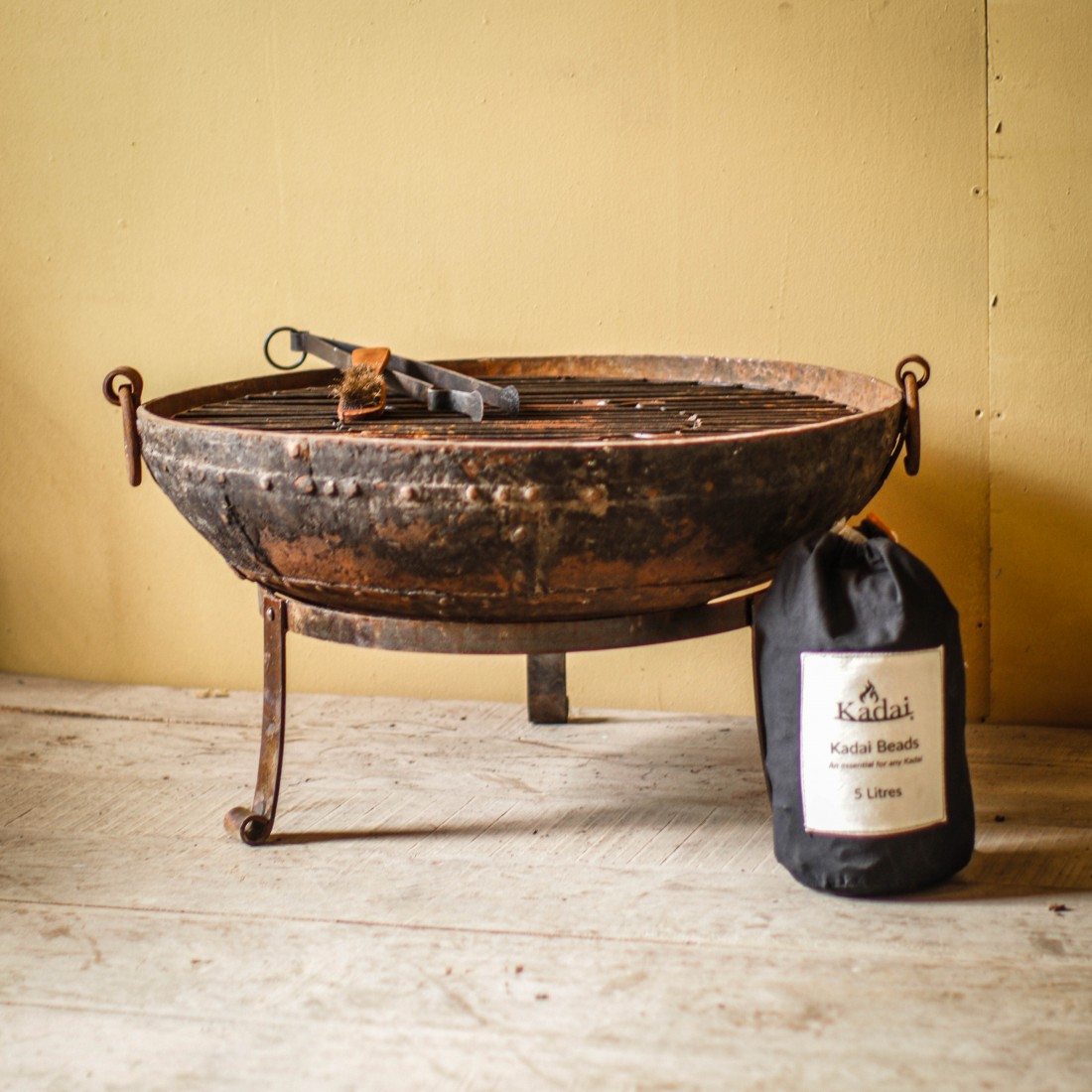 Original Kadais are up to 100 years old and have been hand-picked in Rajasthan. They all have their own unique character from years of use as cooking bowls at weddings and festivals across India. The Low Stand is the ideal height for sitting around and relaxing when using your Original Kadai as a fire bowl or as a barbecue.