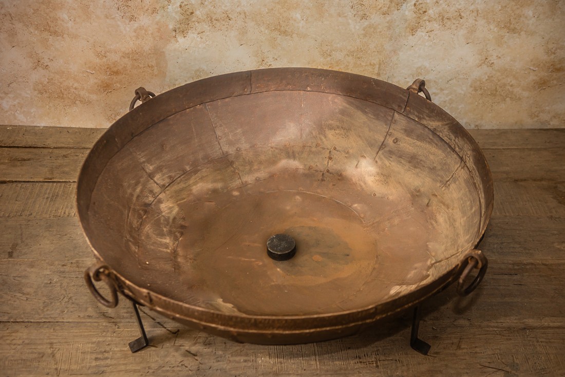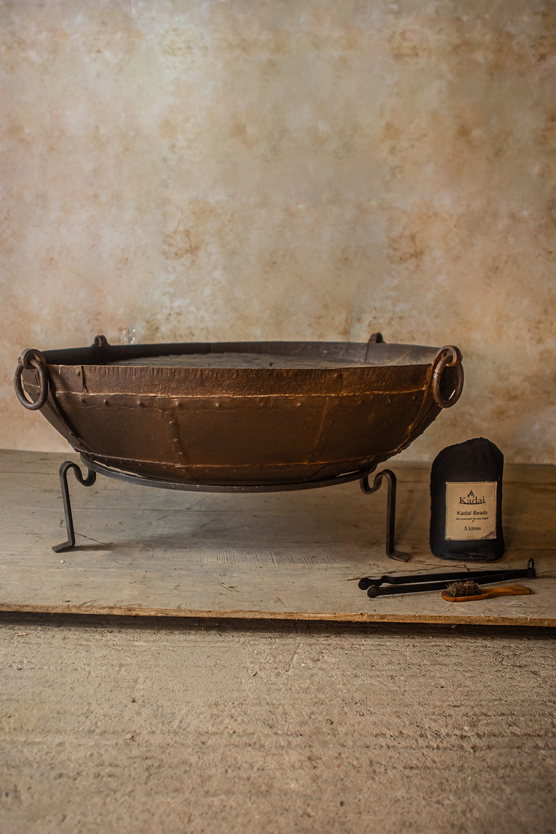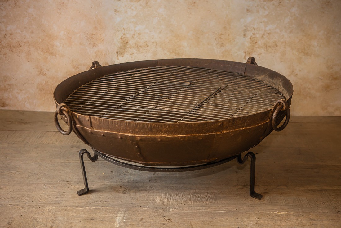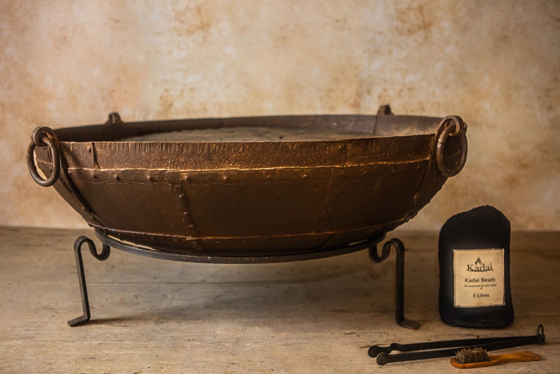 Original Kadais are up to 100 years old and have been hand-picked in Rajasthan. They all have their own unique character from years of use as cooking bowls at weddings and festivals across India. The Tudor Stand is the ideal height for sitting around and relaxing when using your Original Kadai as a fire bowl or as a barbecue.