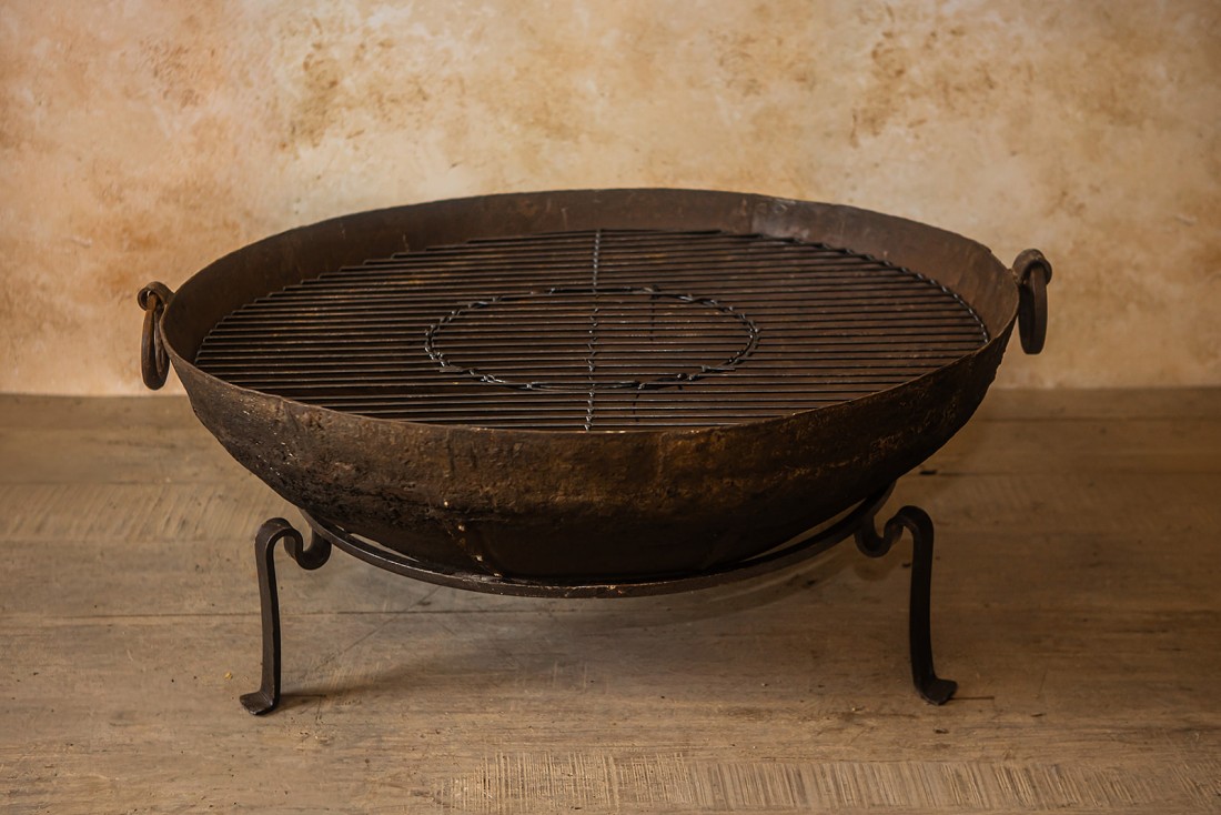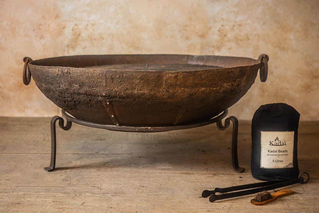Original Kadais are up to 100 years old and have been hand-picked in Rajasthan. They all have their own unique character from years of use as cooking bowls at weddings and festivals across India. The Tudor Stand is the ideal height for sitting around and relaxing when using your Original Kadai as a fire bowl or as a barbecue.
