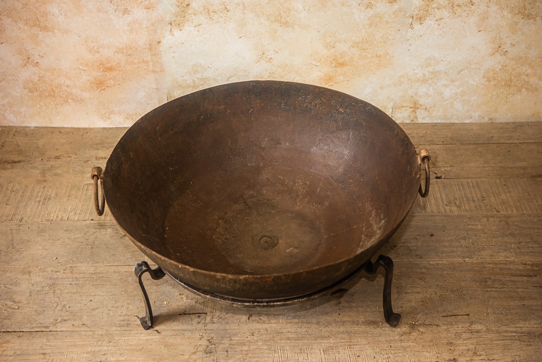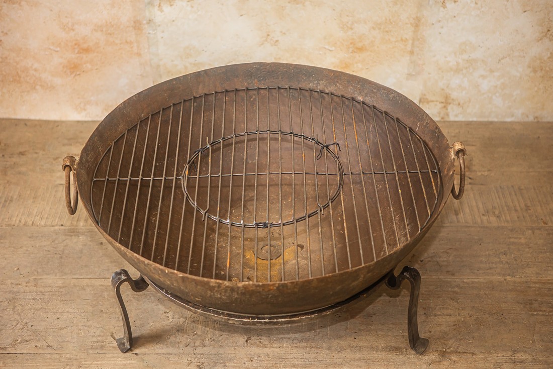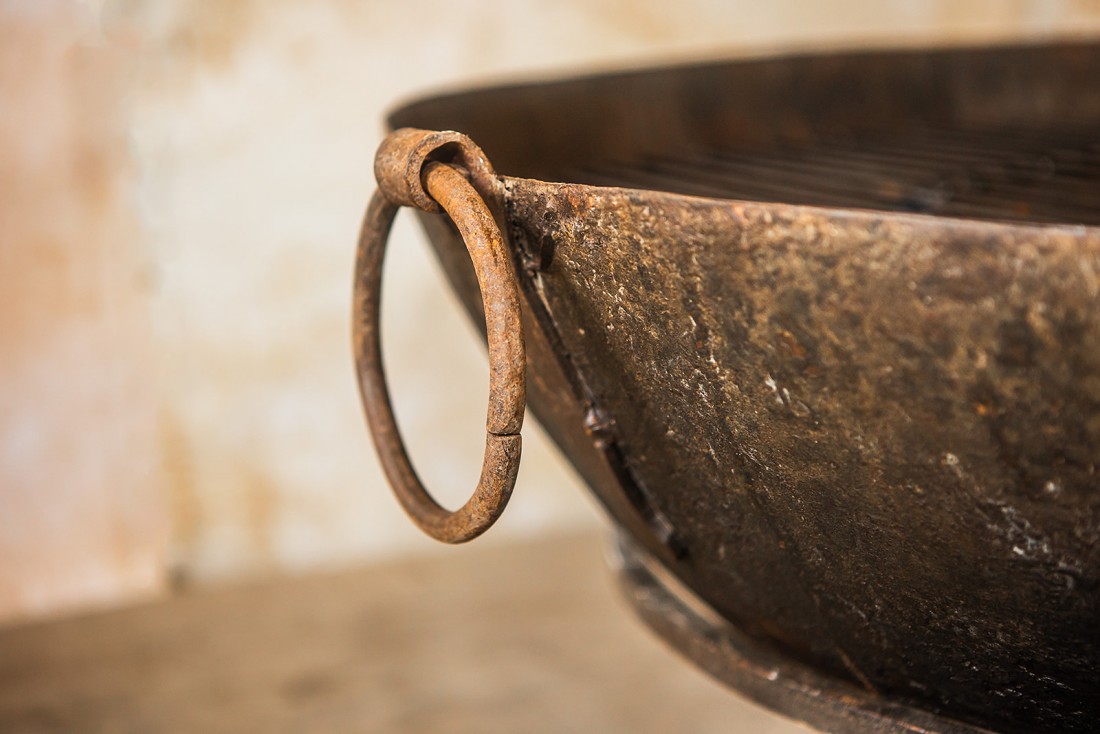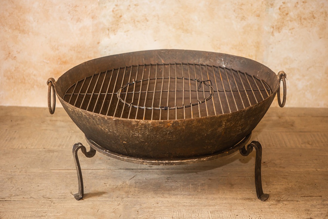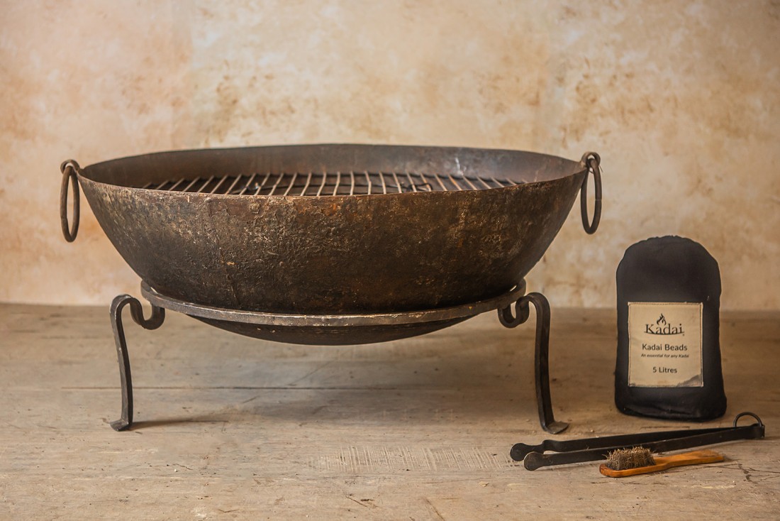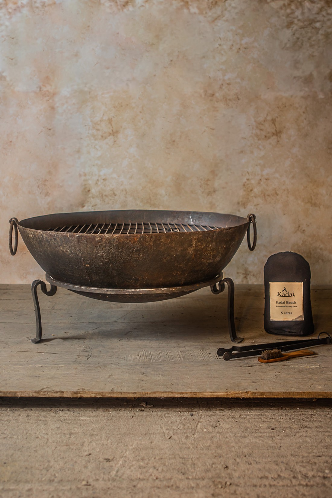 Original Kadais are up to 100 years old and have been hand-picked in Rajasthan. They all have their own unique character from years of use as cooking bowls at weddings and festivals across India. The Tudor Stand is the ideal height for sitting around and relaxing when using your Original Kadai as a fire bowl or as a barbecue.