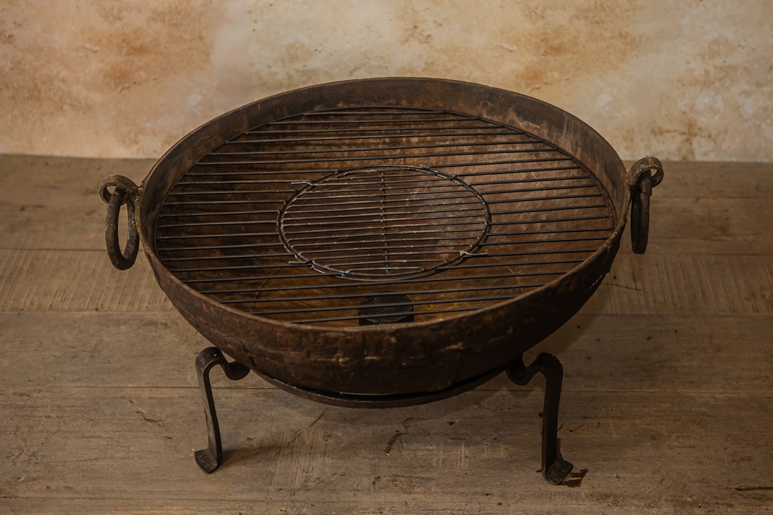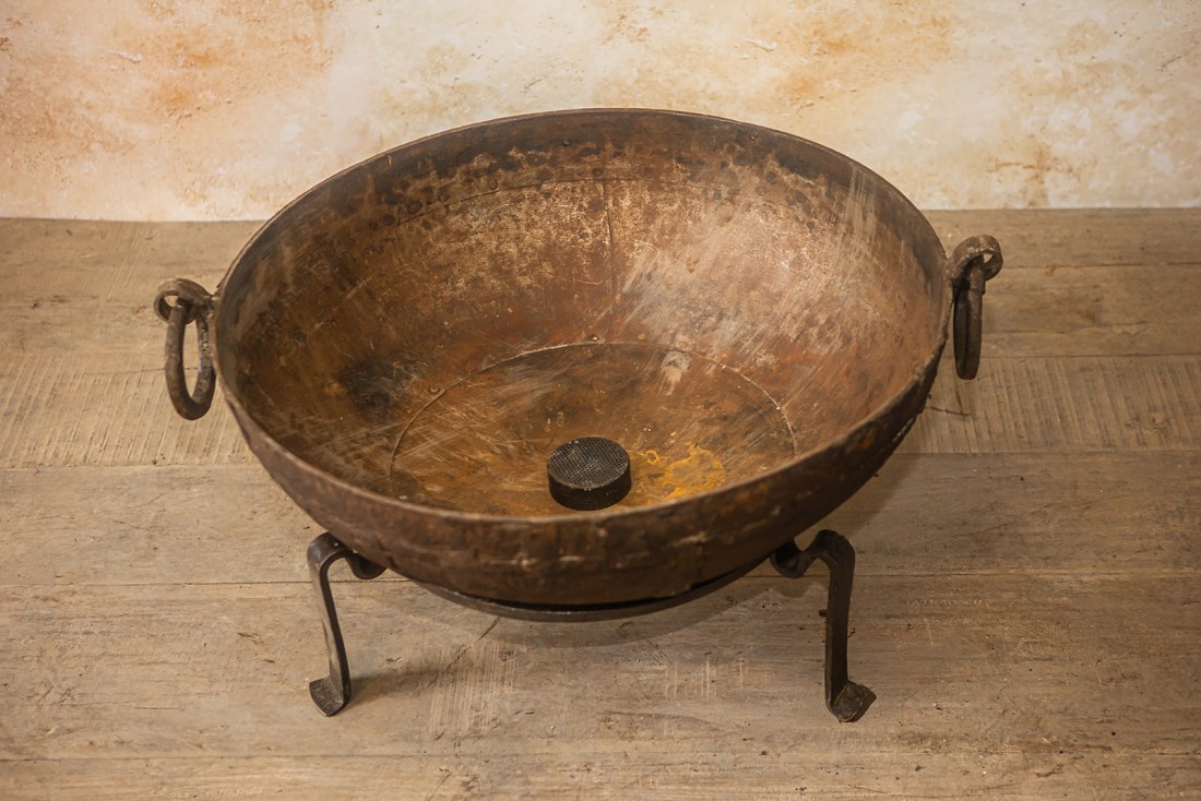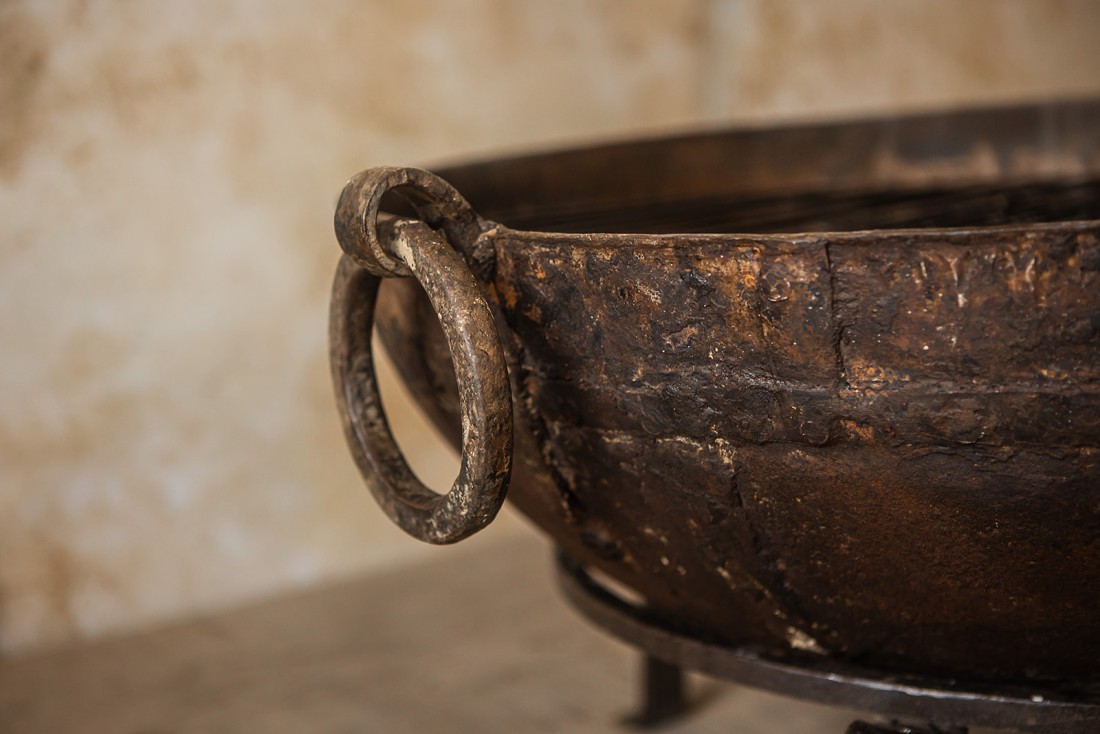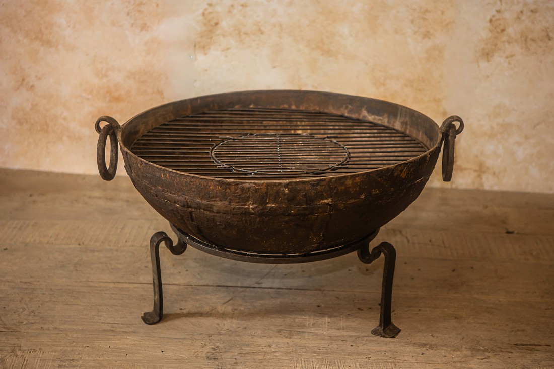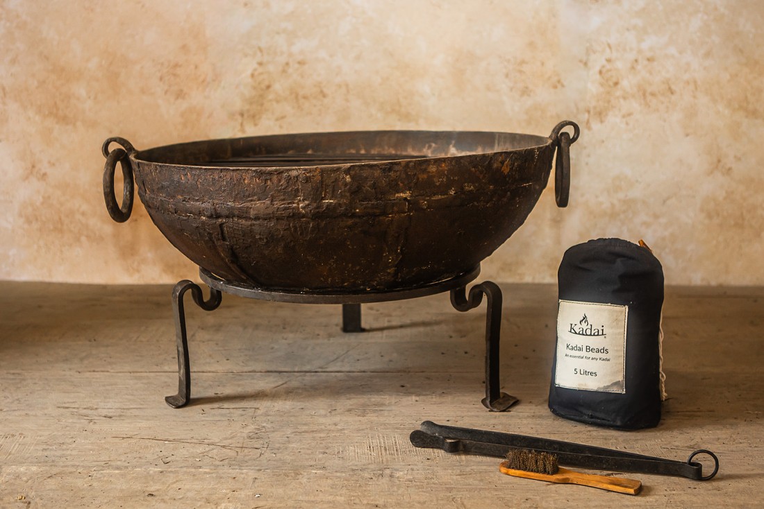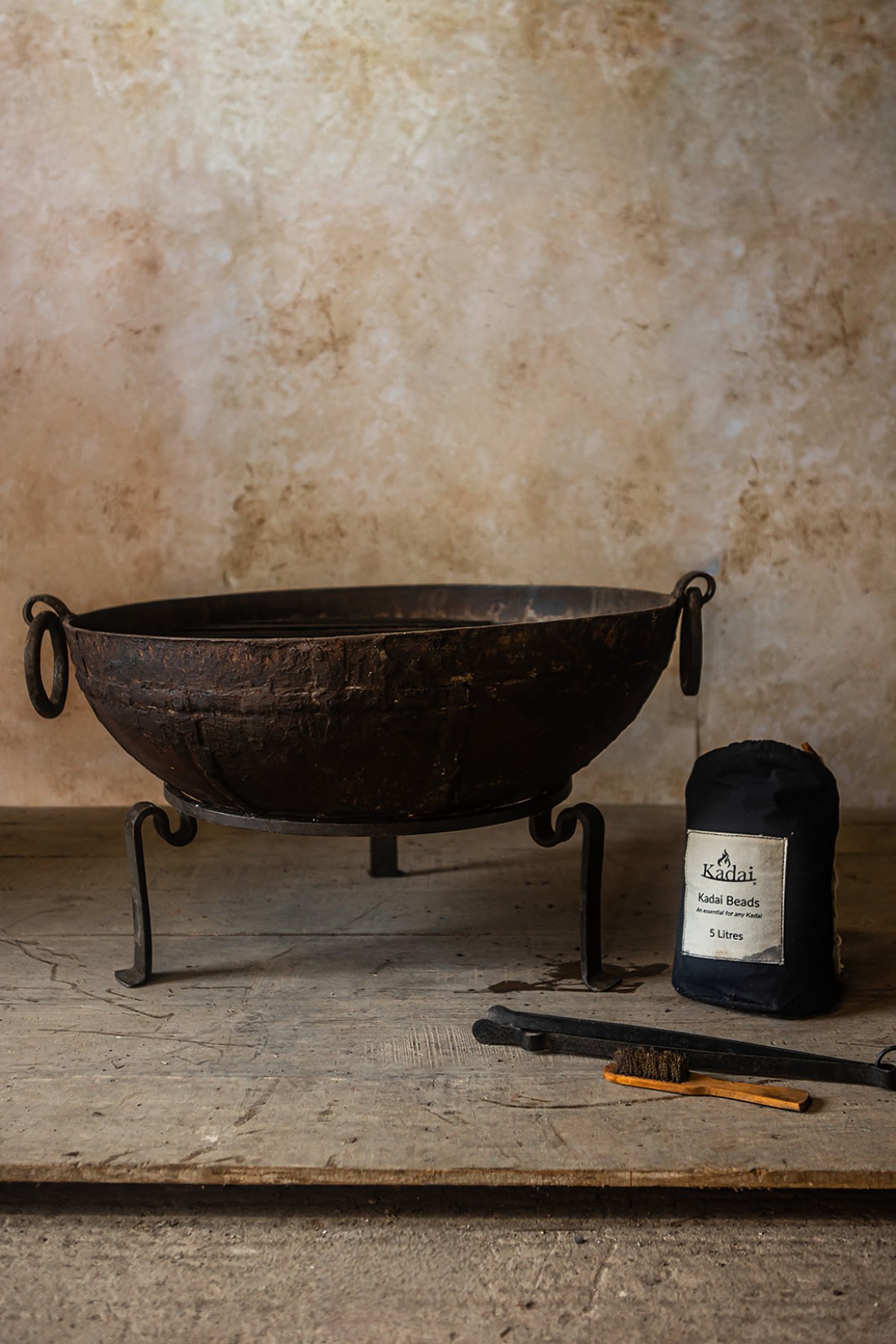 Original Kadais are up to 100 years old and have been hand-picked in Rajasthan. They all have their own unique character from years of use as cooking bowls at weddings and festivals across India. The Tudor Stand is the ideal height for sitting around and relaxing when using your Original Kadai as a fire bowl or as a barbecue.