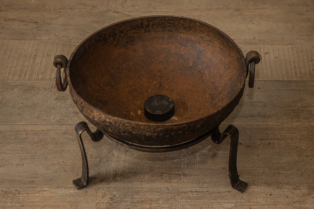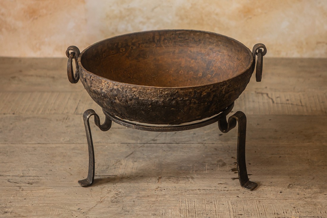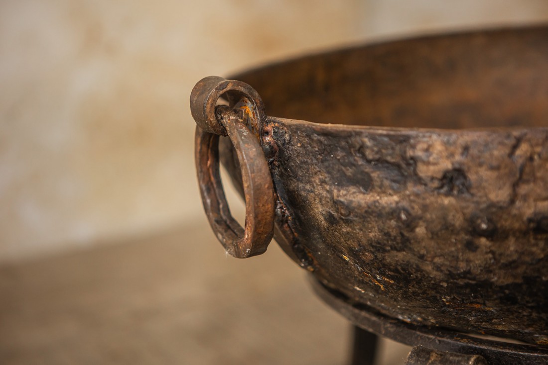 Original Kadais are up to 100 years old and have been hand-picked in Rajasthan. They all have their own unique character from years of use as cooking bowls at weddings and festivals across India. The Tudor Stand is the ideal height for sitting around and relaxing when using your Original Kadai as a fire bowl or as a barbecue.
