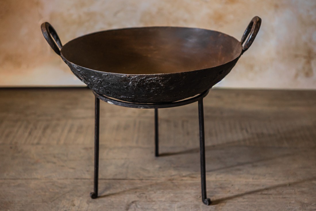 Original Kadais are up to 100 years old and have been hand-picked in Rajasthan. They all have their own unique character from years of use as cooking bowls at weddings and festivals across India. The Travel Stand is the ideal height for sitting around and relaxing when using your Original Kadai as a fire bowl or as a barbecue.