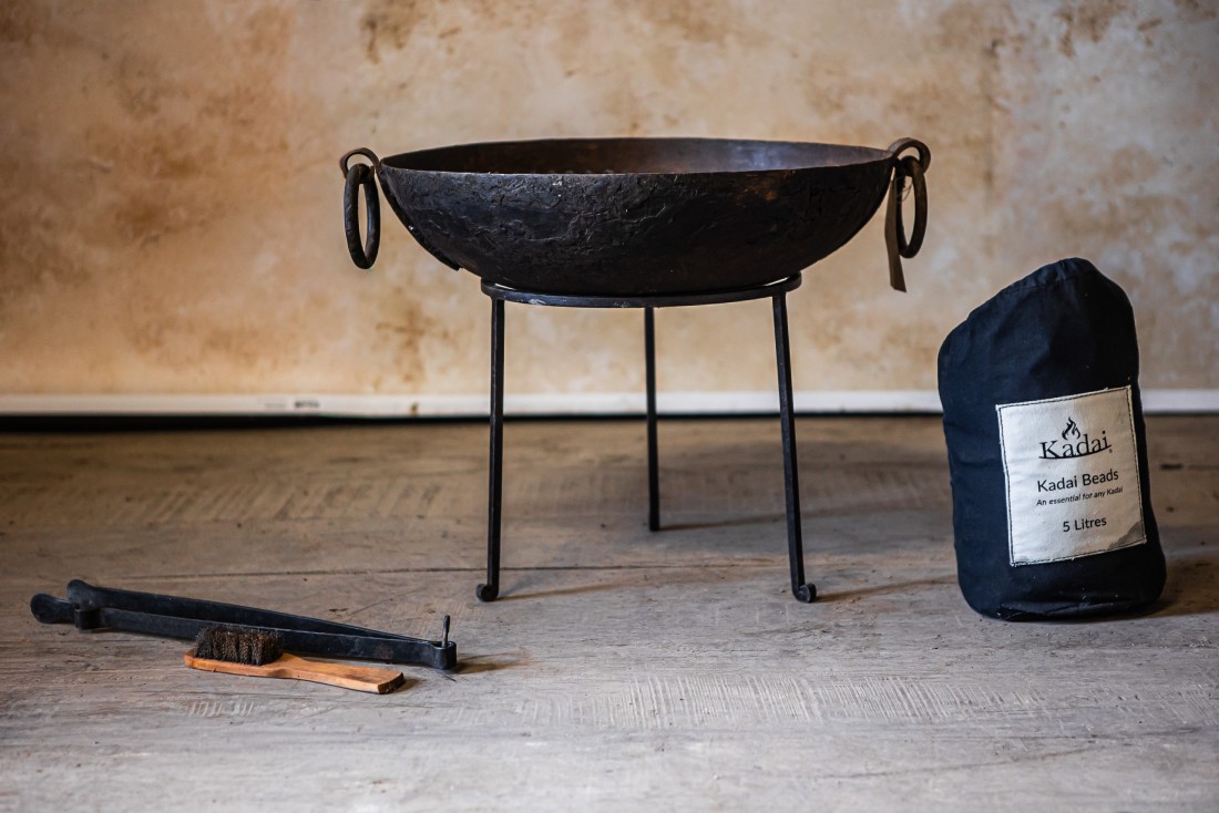 Original Kadais are up to 100 years old and have been hand-picked in Rajasthan. They all have their own unique character from years of use as cooking bowls at weddings and festivals across India. The Travel Stand is the ideal height for sitting around and relaxing when using your Original Kadai as a fire bowl or as a barbecue.