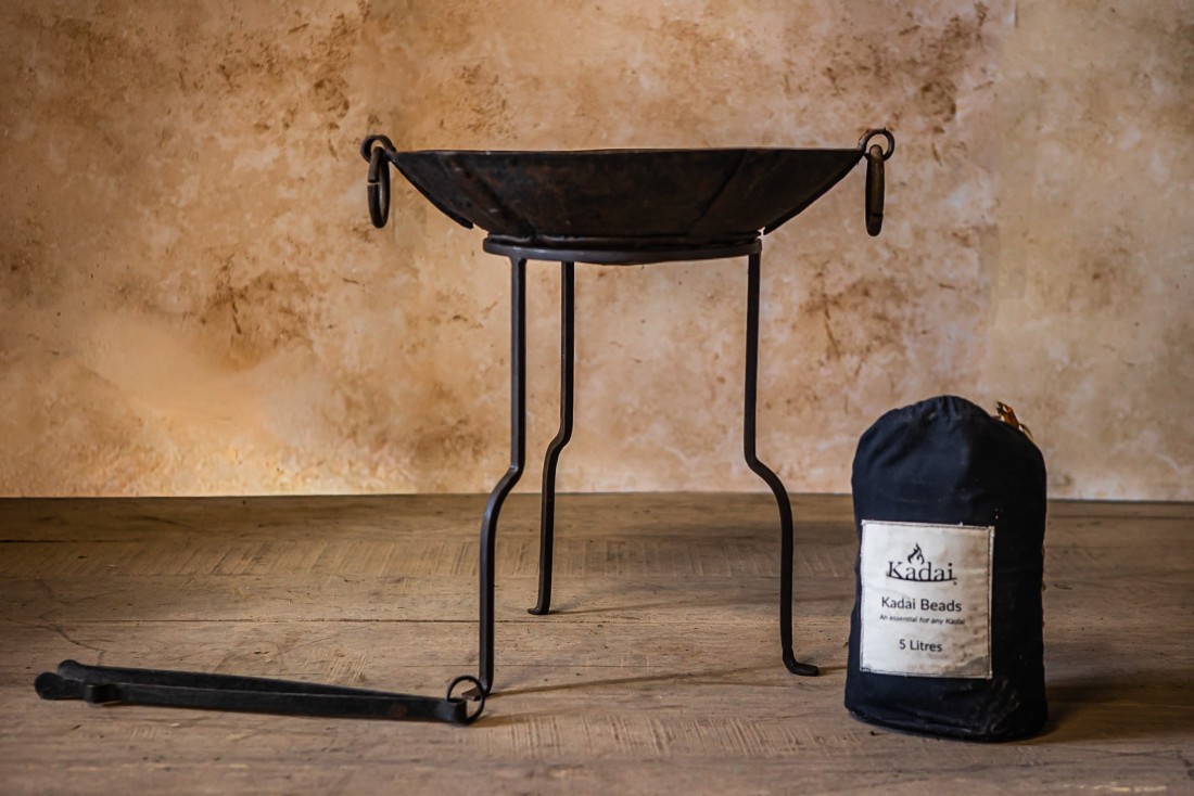 Original Kadais are up to 100 years old and have been hand-picked in Rajasthan. They all have their own unique character from years of use as cooking bowls at weddings and festivals across India. The Champagne Stand is the ideal height for sitting around and relaxing when using your Original Kadai as a fire bowl or as a barbecue.