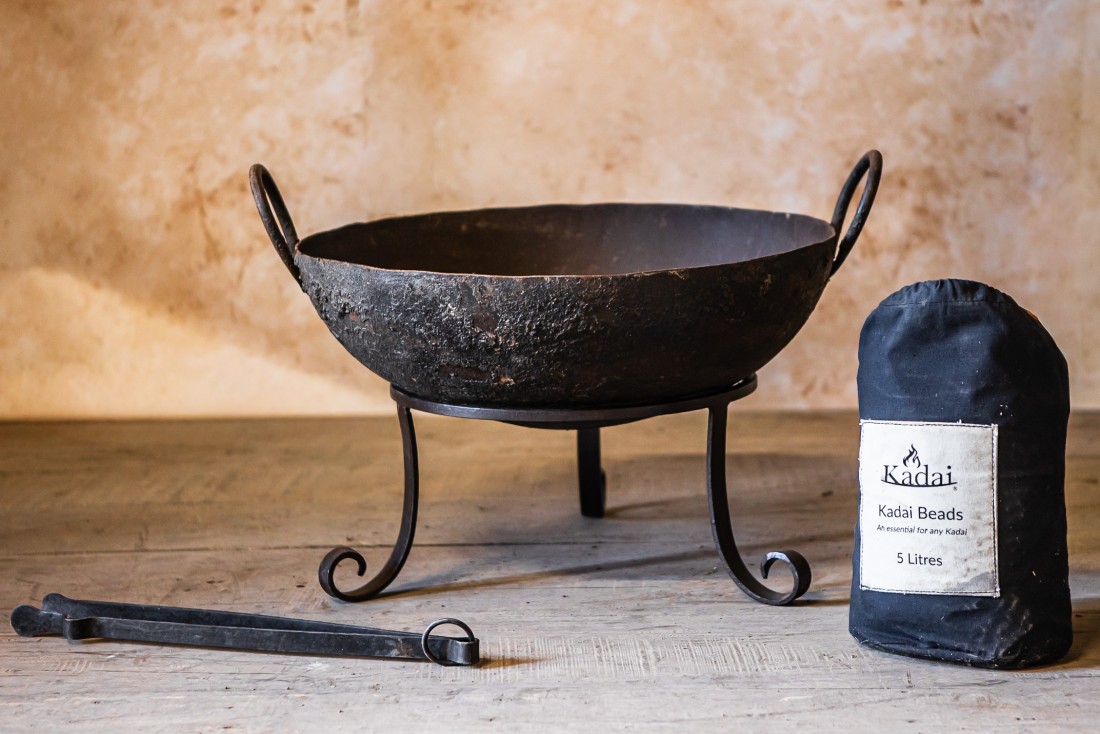 • Includes: Original Kadai Firebowl, Tudor Stand, Tongs, Wire Brush and Kadai Beads.