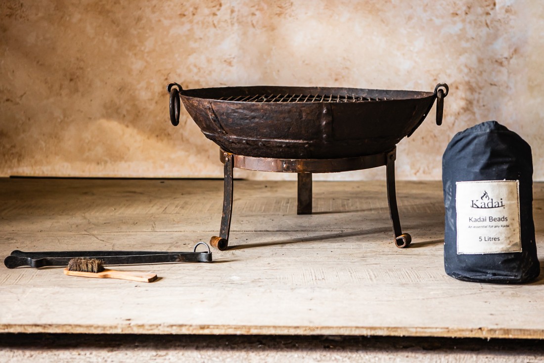• Includes: Original Kadai Firebowl, Low Stand, Grill, Tongs, Wire Brush and Kadai Beads.