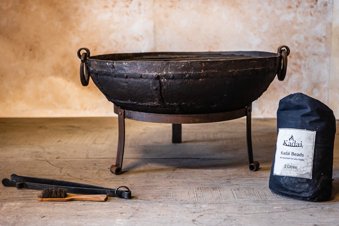 • Includes: Original Kadai Firebowl, Low Stand, Grill, Tongs, Wire Brush and Kadai Beads.