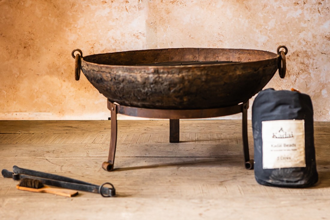 • Includes: Original Kadai Firebowl, Low Stand, Grill, Tongs, Wire Brush and Kadai Beads.