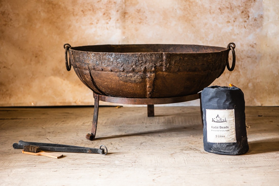 Original Kadais are up to 100 years old and have been hand-picked in Rajasthan. They all have their own unique character from years of use as cooking bowls at weddings and festivals across India. The Low Stand is the ideal height for sitting around and relaxing when using your Original Kadai as a fire bowl or as a barbecue.
