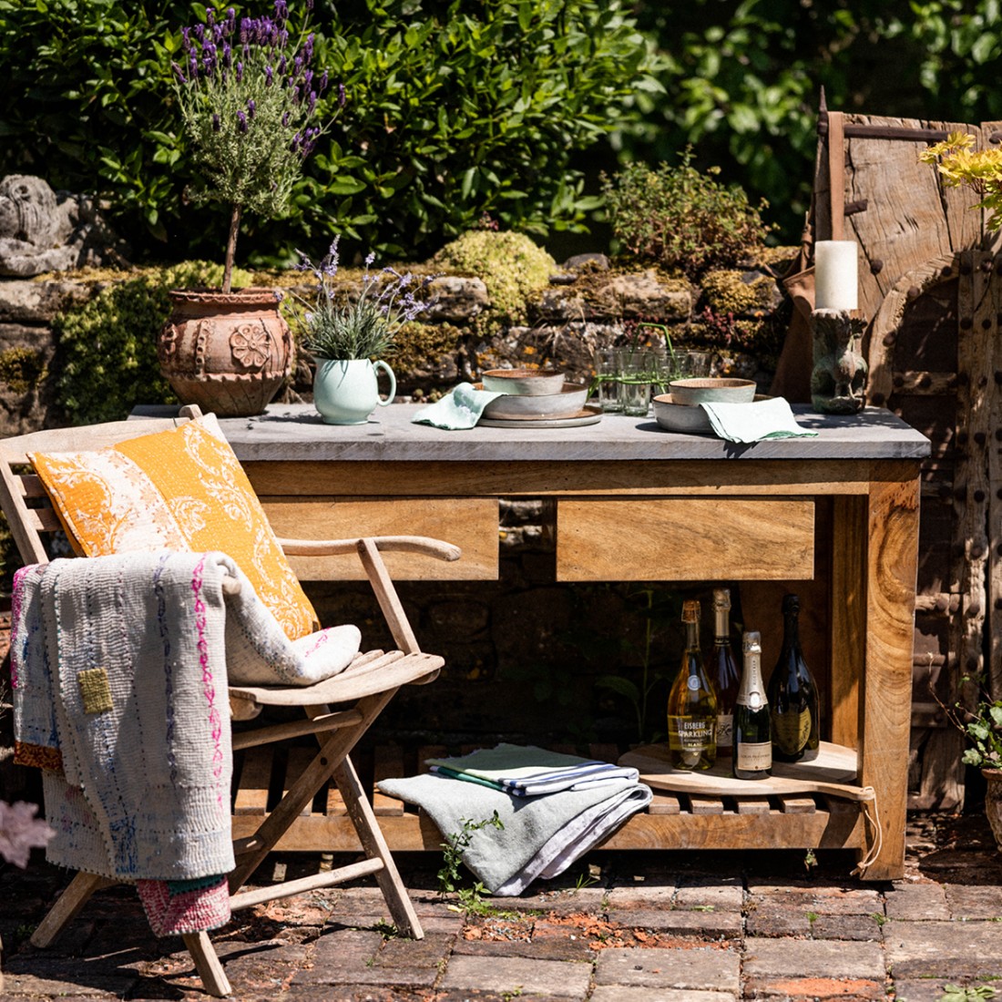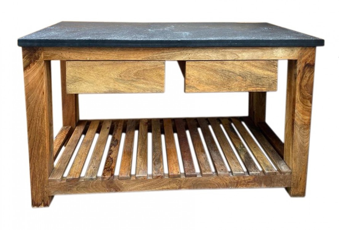 Handmade from sustainably sourced hardwood with a natural black limestone worktop the Garden Kitchen is practical and aesthetic in one. The sturdy shelf is perfect to keep Kadai accessories and charcoal close to hand, with two drawers for utensils, knives and other essentials. Designed to be either placed against a wall or as an island counter the Garden Kitchen enhances any space, inside or outside next to your Kadai. Comes flat packed to reduce its carbon footprint and is easy to assemble.