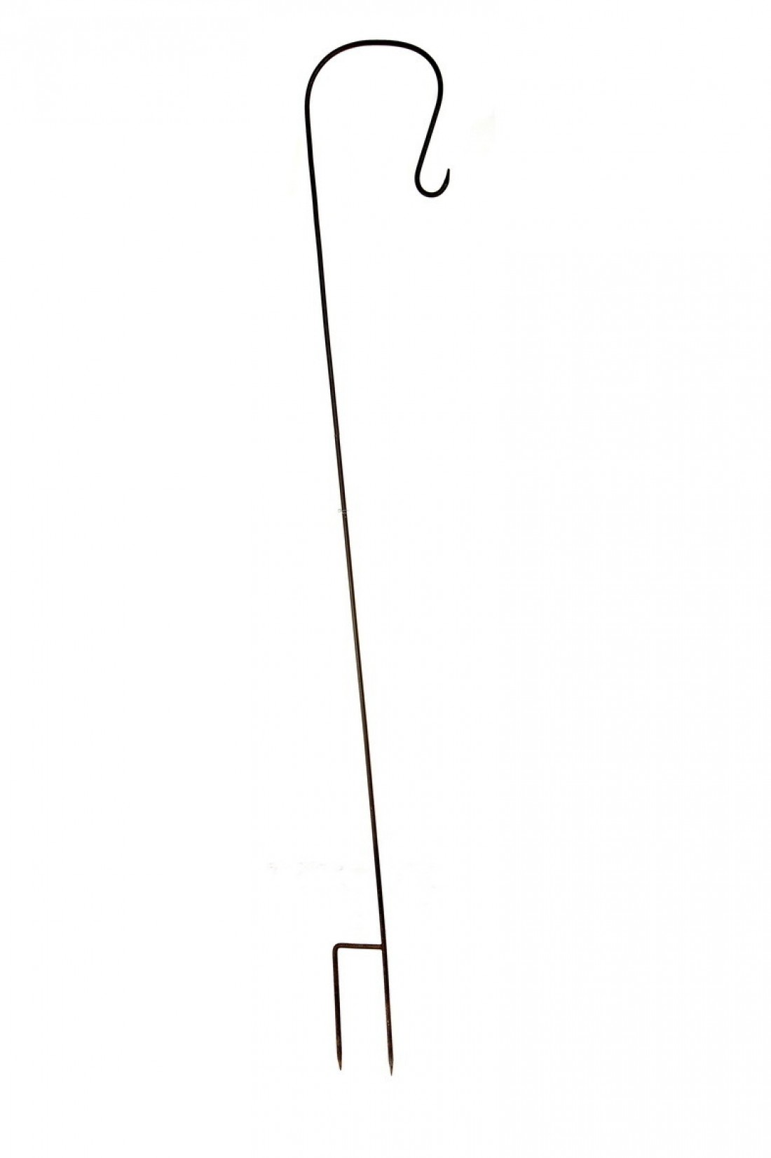 Large shepherds crook design hook for hanging lanterns or bird feeders, with ground spikes.