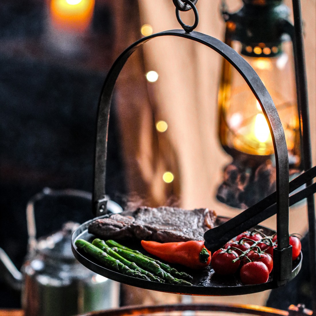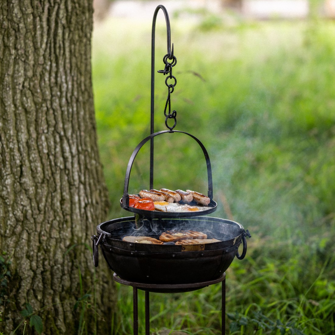 Specially designed to hang from the Travel Kadai Hook or to use directly on the grill, the Portable BBQ Skillet has a folding handle to easily fit inside the Duffle Bag. Perfect for sizzling steaks, frying eggs or cooking pancakes.